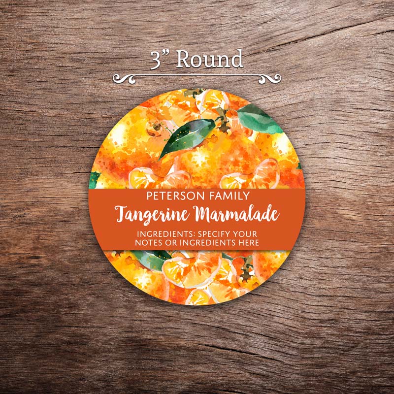 Published January 2, 2021. Size: 800 × 800 in Customized Label – Tangerine Marmalade, Watercolor Canning Label – 3 inch Round