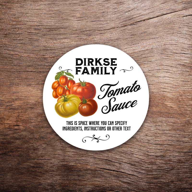 These vintage-style tomato canning labels are customizable for your own cellar. This label features a tomato and is perfect for labeling your homemade canned tomatoes, tomato sauce, tomato paste, ketchup or tomato salsa (if you want us to add a pepper, just ask!).