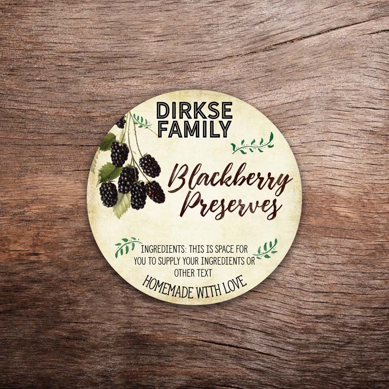 Put the finishing touches on your homemade blackberry jam and preserves with our customized labels. These vintage-style canning labels are customizable for your own cellar.