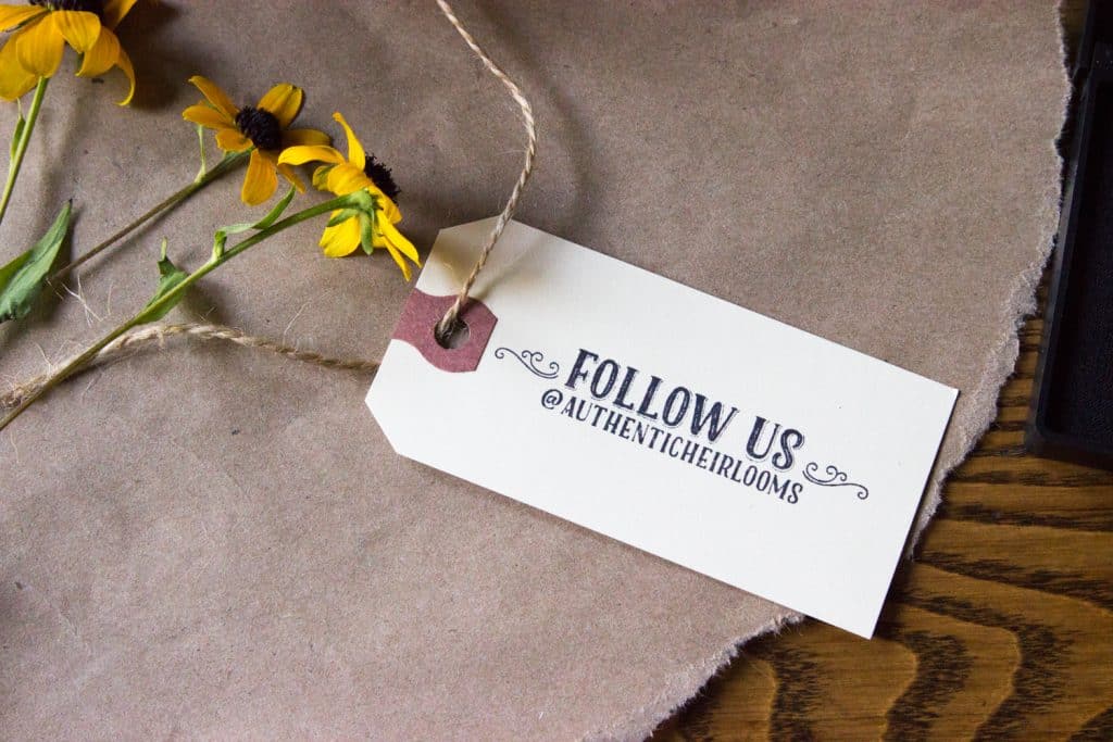Our Follow Us stamp is a great way to get your real-world customers to connect with you online. These stamps are customizable with your handle – we can also specify the social network that you’d people to find you on. This stamp is coordinated with our customizable egg carton stamps too, so you can have consistent branding on your egg cartons and other products.