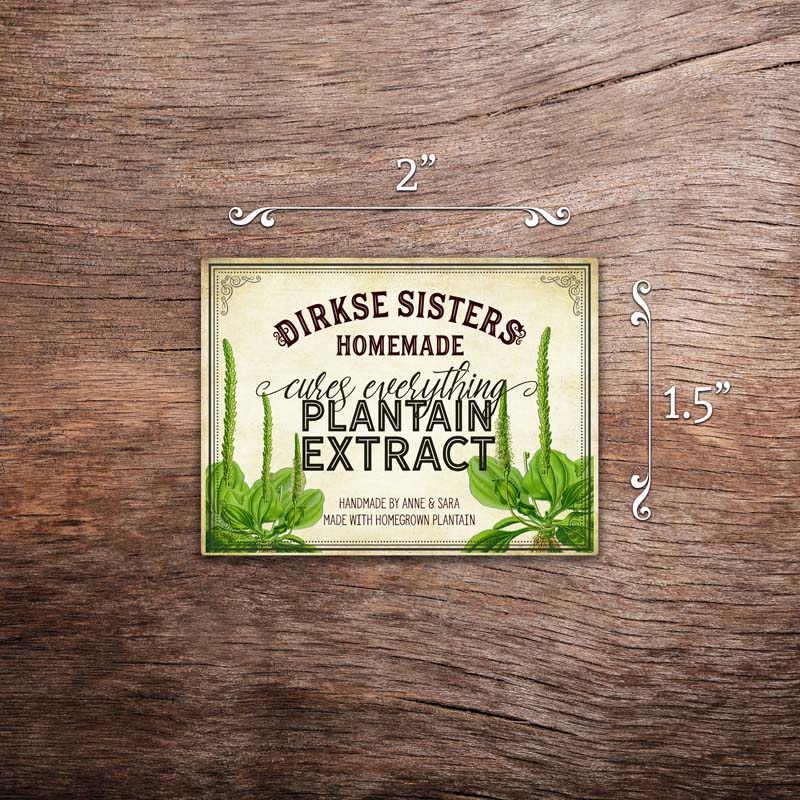 Our custom plantain tincture and plantain extract labels will add a vintage flair and a professional look to your homemade plantain remedies. The label design features vintage plantain illustrations you can customize the text and the logo/name space, either by customizing the text or supplying your own logo if you have one.