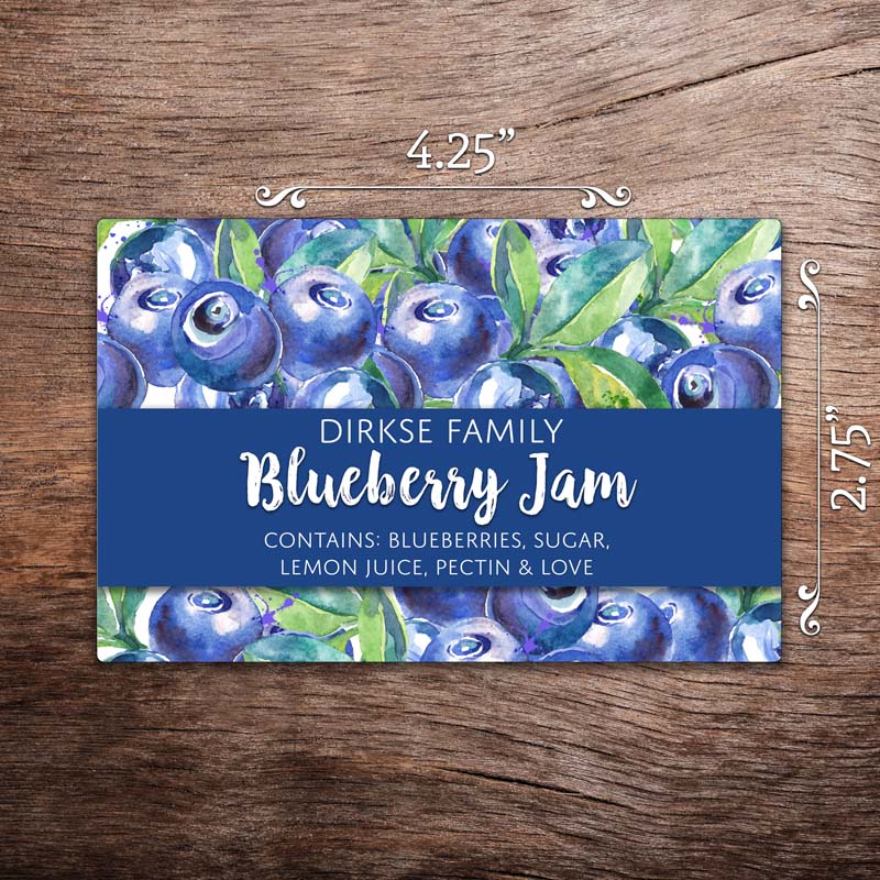 These watercolor-style blueberry canning labels are customizable for your own cellar. This label features watercolor blueberries. They’re perfect for labeling your homemade blueberry jam and blueberry preserves.