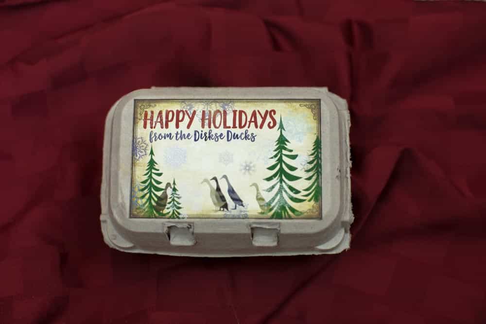 Our customizable holiday duck egg carton labels let you create beautiful, custom half-dozen cartons for your duck eggs that you give as gifts during the holiday season. This design is watercolor style with vintage elements and is customizable with your farm name and other text elements. Do you need specialized information added to the carton? Just let us know in the comments when you order. We print these labels on our premium, water resistant label stock, with archival inks on our professional printer. The beautiful color saturation, as well of the smooth finish of these labels, will bring a professional look to even the smallest backyard egg operation!