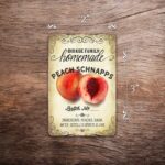 Our custom Peach liqueur and wine labels will add a vintage flair and a professional look to your homemade spirits. The label design features a vintage peach illustration, and you can customize the text and the logo/name space, either by customizing the text or supplying your own logo if you have one.