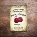 Our customized plum liqueur labels will add a vintage flair and a professional look to your homemade spirits. The label design features vintage plum illustrations and an antique paper style background, and you can customize the text and the logo/name space, either by customizing the text or supplying your own logo if you have one.