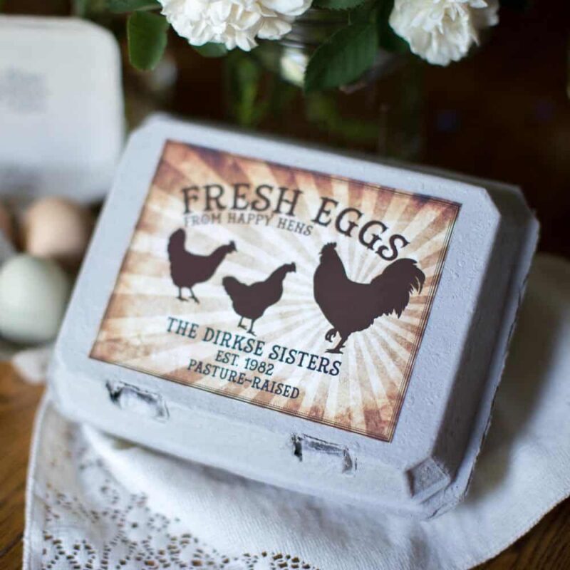 Our customizable egg carton labels let you create beautiful, custom half-dozen cartons for your eggs. This design is vintage style featuring a rising sun and is customizable with your farm name and other text elements. Do you need specialized information added to the carton? Just let us know in the comments when you order. We print these labels on our premium, water resistant label stock, with archival inks on our professional printer. The beautiful black and color saturation, as well as the smooth finish of these labels, will bring a professional look to even the smallest backyard egg operation!